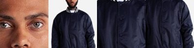 60/40 cotton/polyester Structured polyester collar Durable metal hardware Raglan sleeves Side welt pockets Striped design on ribbing (cuff & bottom)